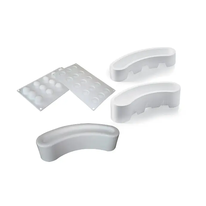 "4 moulds together in one unique successful combination of shape and taste. The kit is composed by 4 pieces: 3 food safe silicone moulds 100% Made in Italy and one plastic support to guarantee more stability during the preparation phase. The Kit is made in collaboration with the Team Italia, composed by: the president Gino Fabbri, the captain Lucca Cantarin,Francesco e Marcello Boccia and the trainer Alessandro Dalmasso.Team Italia, award winning at the Coupe du Monde de la Pâtisserie of Lione 2013.