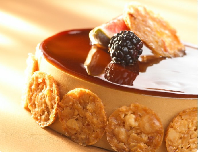 Ready-to-use caramel flavoured mirror for bavarois and mousses. Gives a perfect shine and a mirror with high, consistent quality. For horizontal mirrors.