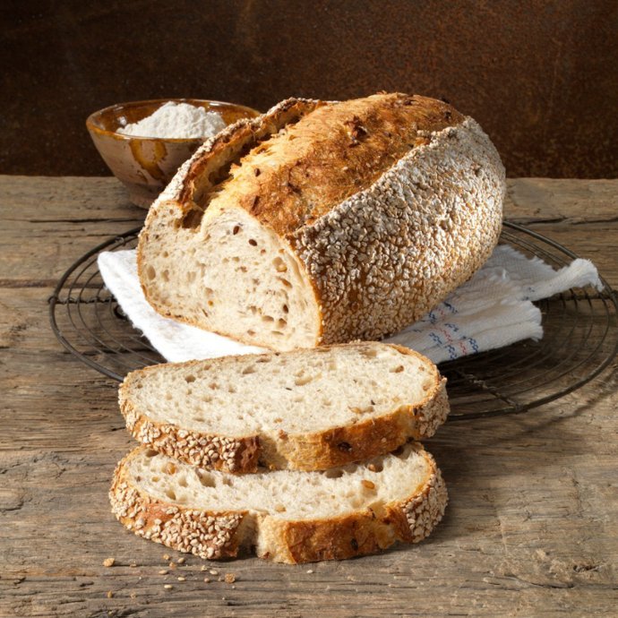 High qualitative bread mix in powder form for old-fashioned dark country loaves with 5 different cereals and seeds.