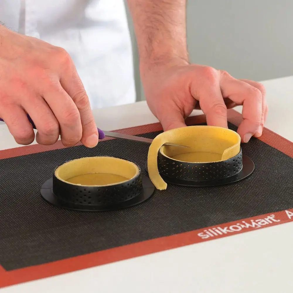 The traditional pie comes in a new "dress" thanks to Tarte Ring Round Ø 80 mm by Silikomart Professional. The kit is composed by six rings with a 80 mm diameter in thermoplastic composite crush-proof material suitable for baking and creating the base. The rings are non-stick and stainless, they allow an homogenous baking and they are characterized by a high thermal stability. The pie created with Tarte Ring Round Ø 80 mm is confirmed as an evergreen whose classic modernity will let you sweetly surprised.